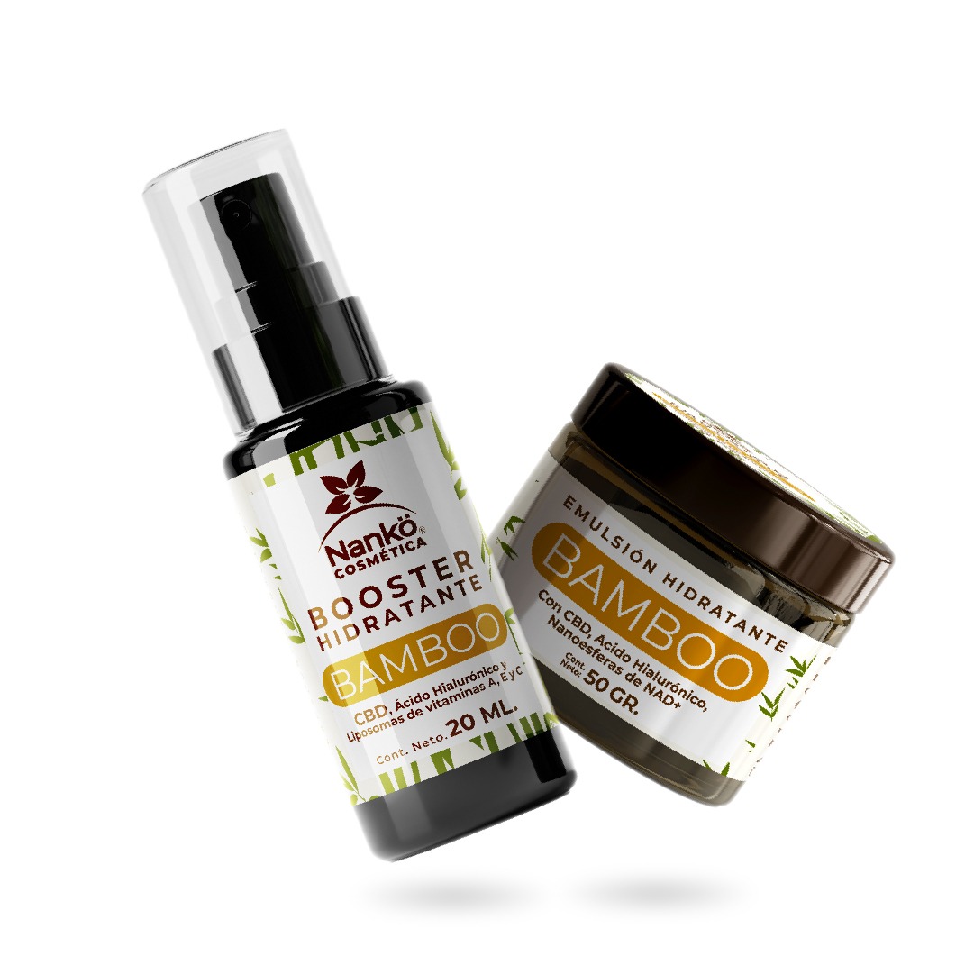 Emulsion Hidratante Bamboo, Con CBD, CBN, un Shot de Acido hialuronico y Nano esferas de NAD+ 50gr.
